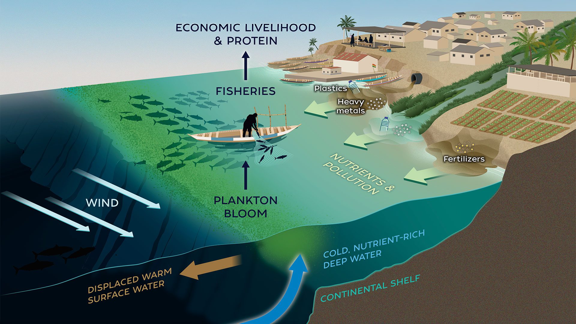 The ocean margins are some of Earth’s most biologically productive regions but are poorly represented in global climate and carbon cycle models. As the nexus between land, nearshore ecosystems and the pelagic ocean, these regions are sensitive to anthropogenic forcing, which generates biogeochemical impacts that have cascading effects on ecosystem functioning and ocean health, both locally and globally. At the same time, they provide critical ecosystem services to coastal populations.